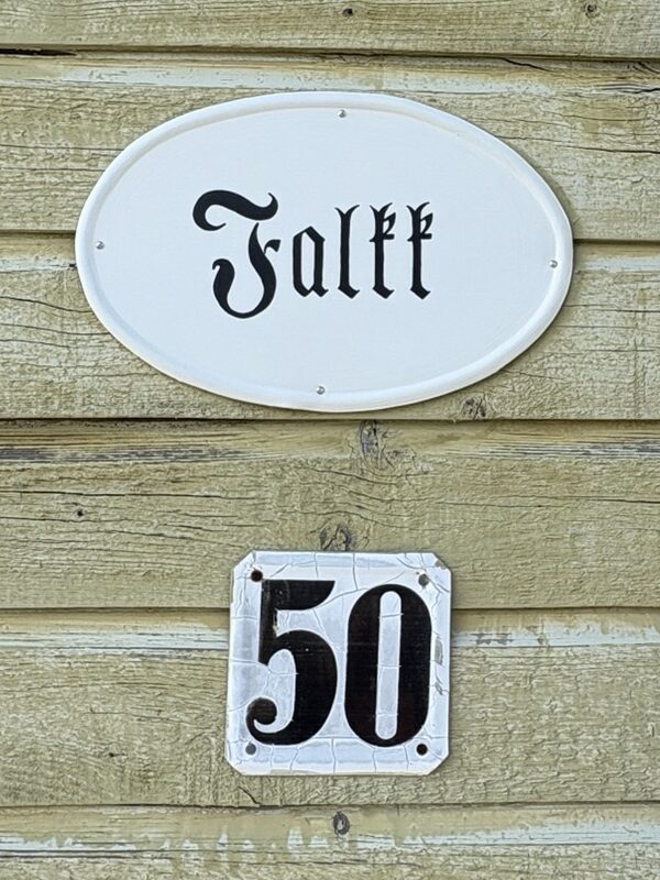 Vanhan Rauman taloilla on oma nimi ja tämän talon nimi on "Falkk". Talojen nimet löytyvät rakennuksen seinällä olevista nimikylteistä. Falkkin, ja kaikkien muidenkin Vanhan Rauman talojen, tietoja pääset tutkimaan osoitteessa visitrauma-sivustolla.
