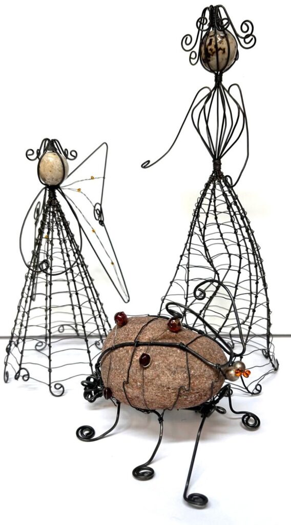 Metallilangasta taivuttamalla ja yhdistelemällä erilaisia kierrätysaarteita, helmiä ja kristalleja annamme vanhoille materiaaleille mahdollisuuden herätä eloon taiteena ja tunnelmaa tuovina teoksina. Opettelemme erilaisia tekniikoita, minkä avulla metallilangasta taivuttamalla syntyvät herkät kynttilälyhdyt, jouluiset enkelit ja koristeet sekä omaleimaiset pienet mielikuvitushahmot.